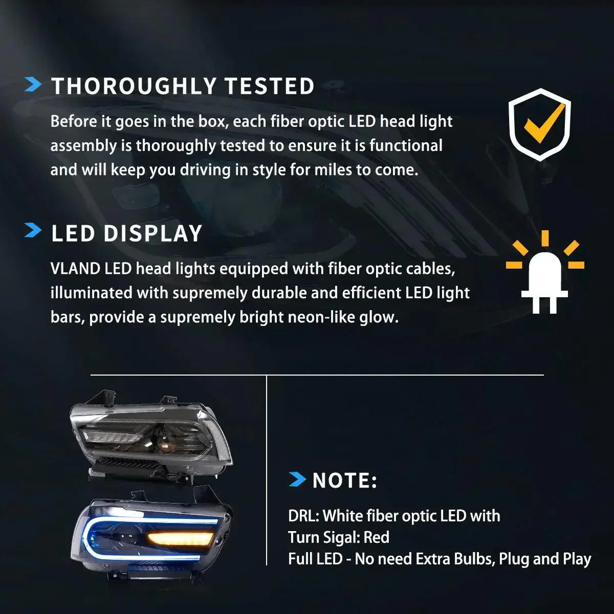 مجموعة مصابيح أمامية LED RGB ثنائية الشعاع باللون الأسود لسيارة Dodge Charger (LD) موديلات 2011-2014