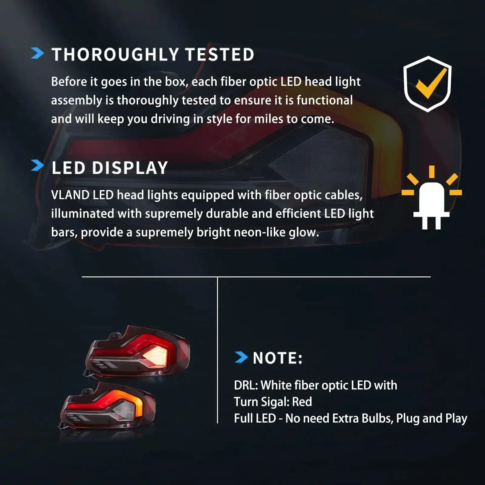 - تم تصميم التركيب المباشر OEM ليكون بديلاً دقيقًا لمصابيح المصنع الأمامية الخاصة بك دون الحاجة إلى تعديلات على السيارة.