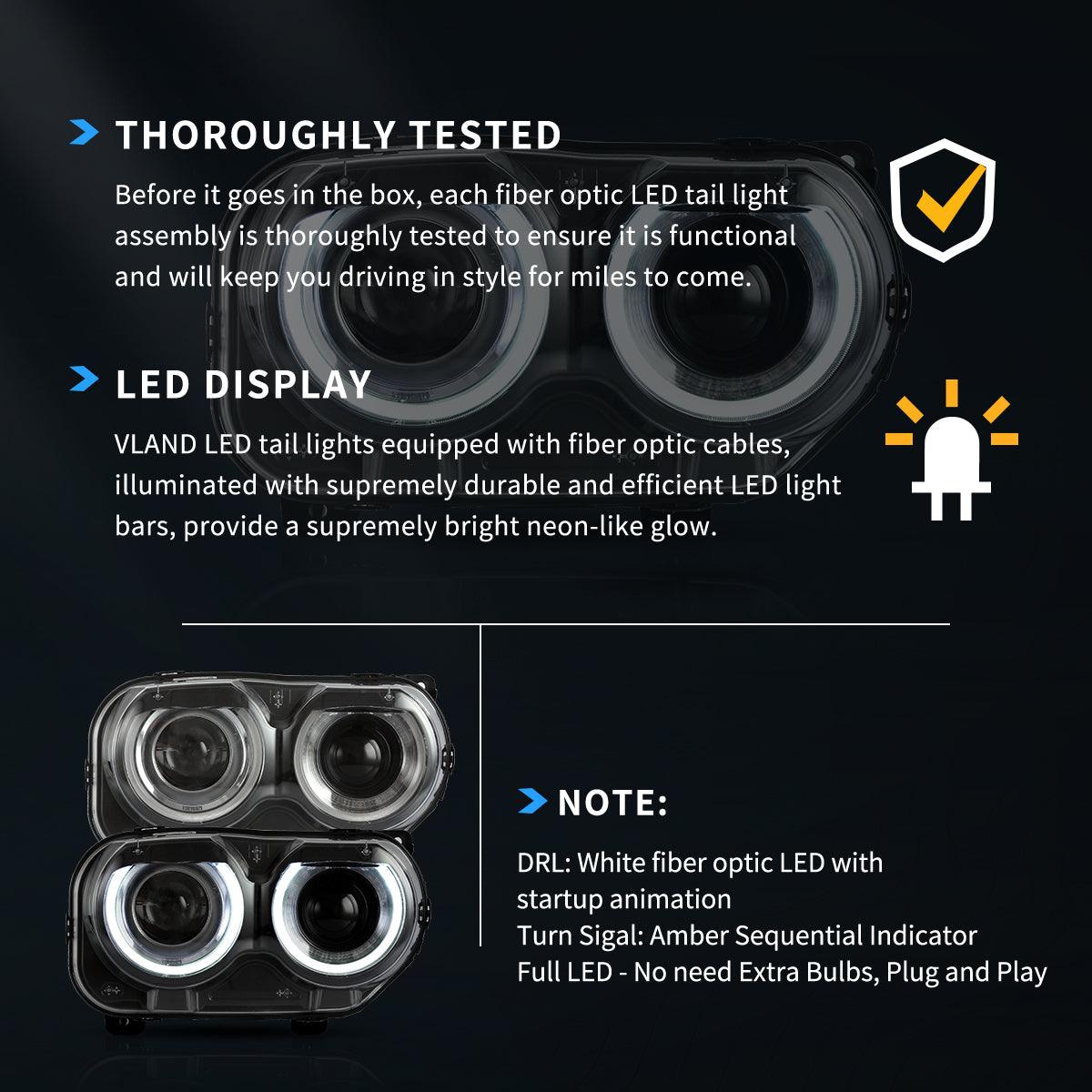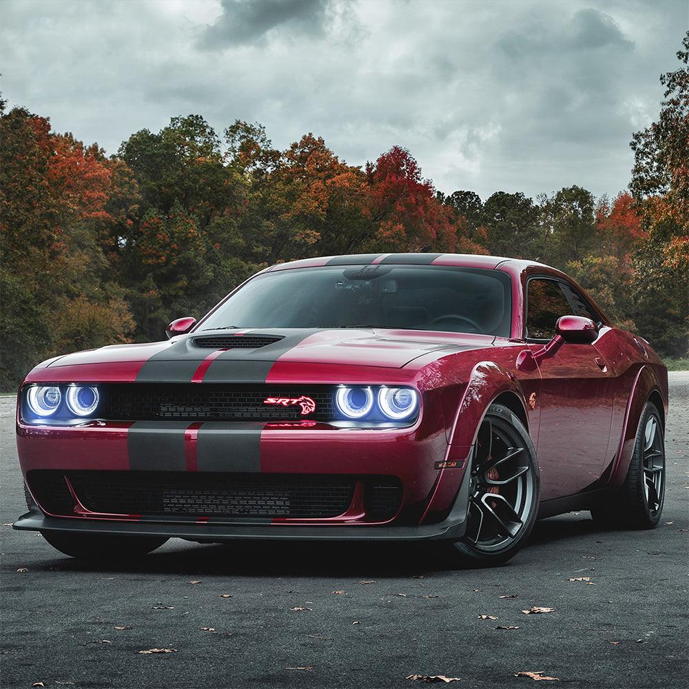 مجموعة مصابيح أمامية LED RGB ثنائية الشعاع باللون الأسود لسيارة دودج تشالنجر الجيل الثالث المحدثة موديلات 2015-2024