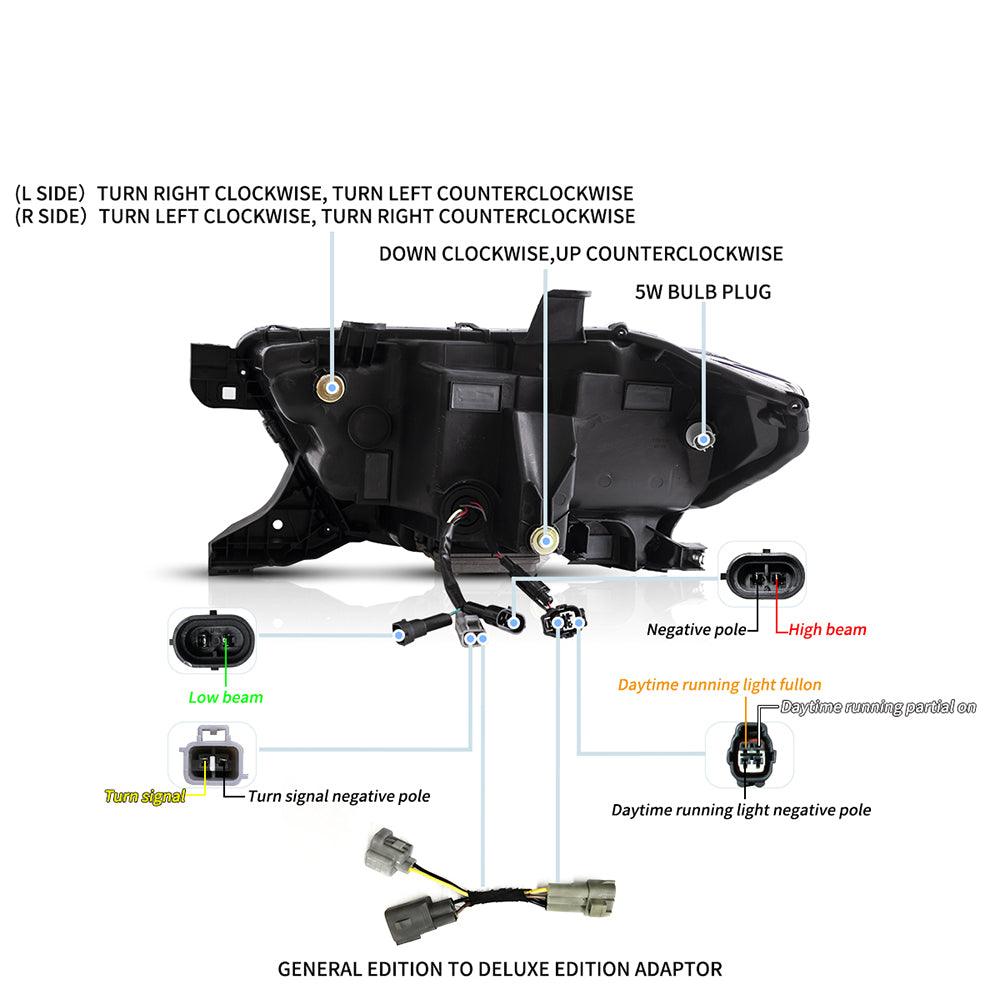 - مناسب لسيارة تويوتا تاكوما الجيل الثالث (N300) 2016-2023، مصابيح أمامية قابلة للتوصيل والتشغيل مع مصابيح أمامية لجهاز عرض TRD Stock