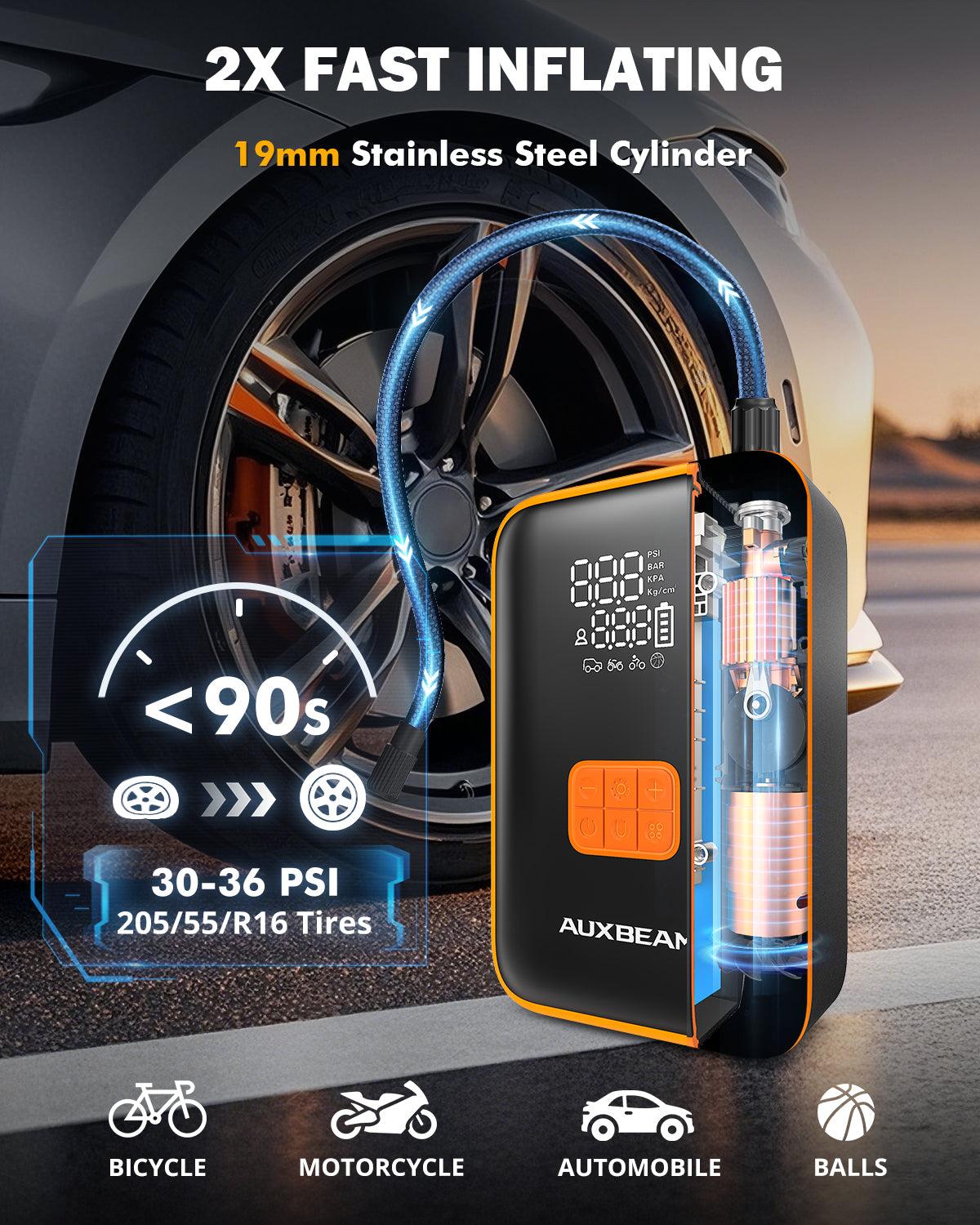 - الكفاءة: يمكنك نفخ إطارات السيارة في بضع دقائق فقط.