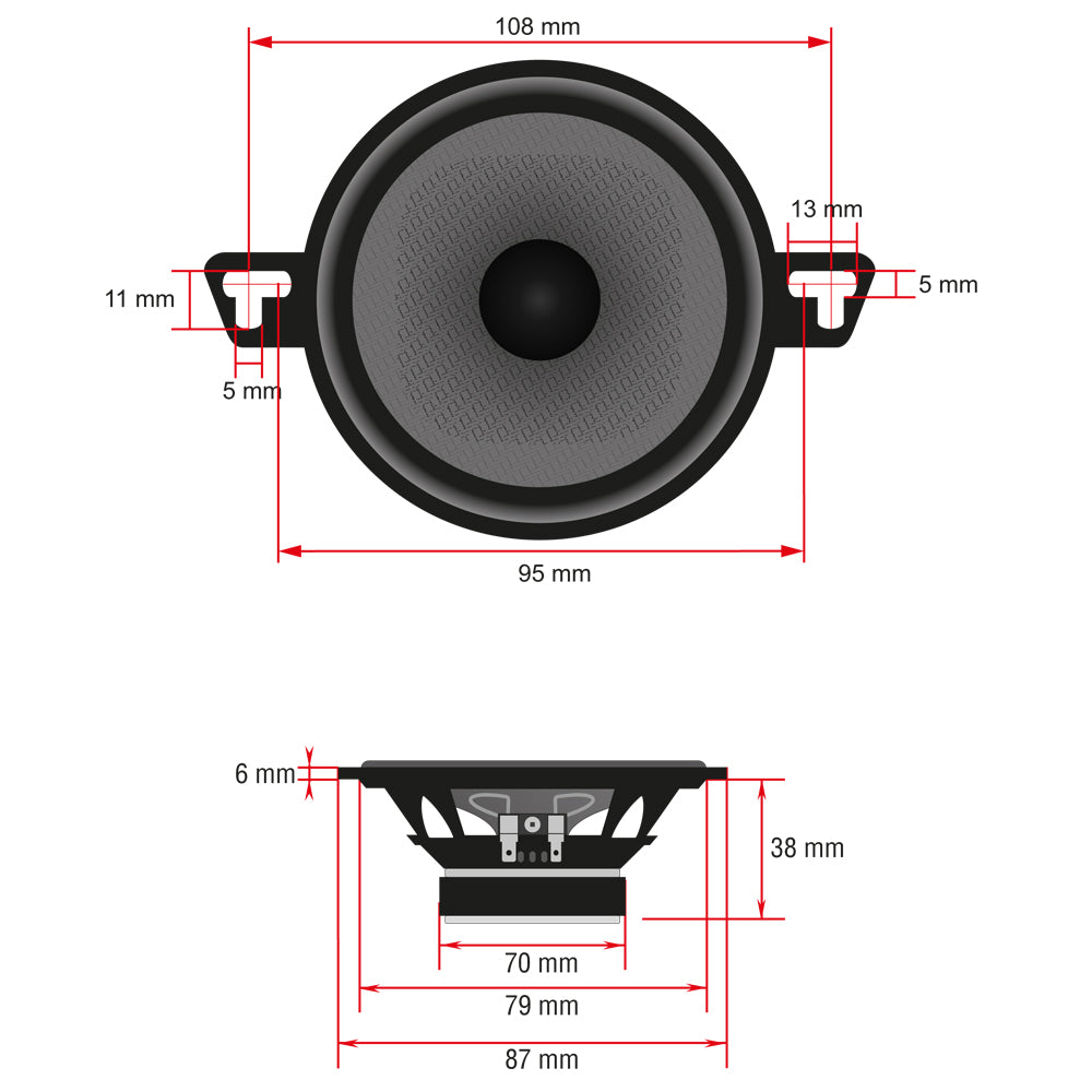 مكبر صوت AMPIRE ثنائي الاتجاه مقاس 87 مم بدون شبكة