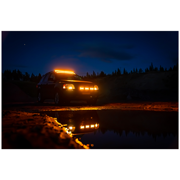 Feu d'appoint très puissant équipé d'une lentille chauffante, d'un mode Purelux PowerBoost® et d'un feu de position bicolore (orange et blanc). Le chauffage de la lentille peut être activé lorsque la voiture est en marche ! Puissance lumineuse maximale 14600 lm, portée 552 m.