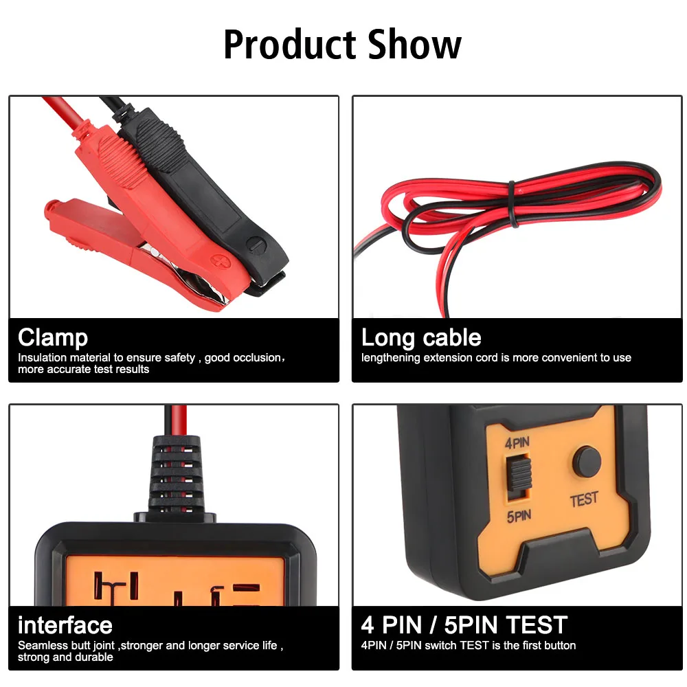 جهاز اختبار مرحل السيارة، جهاز اختبار الجهد، جهاز فحص بطارية السيارة العالمي 12 فولت، جهاز اختبار مرحل إلكتروني للسيارات، ضوء مؤشر LED