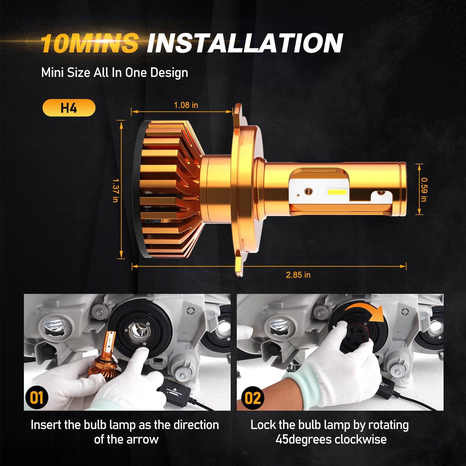 اكتشف مصابيح LED الأمامية H4/9003، سلسلة F2، 52 واط، 10000 لومن، حجم صغير، 6500 كلفن، لون أبيض بارد | لمبتان ، الإضاءة المثالية لسيارتك! مع سطوع 10,000 لومن، توفر هذه المصابيح رؤية استثنائية، أكثر سطوعًا بثلاث مرات من مصابيح الهالوجين التقليدية.