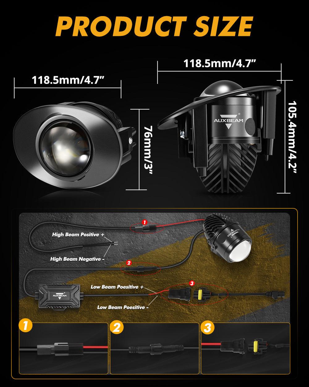 - يمكن توصيل مصباح الضباب هذا وتثبيته بسهولة من خلال مجموعة موصلات التوصيل المضمنة، مما يزيل مشكلة الأسلاك الزائدة.