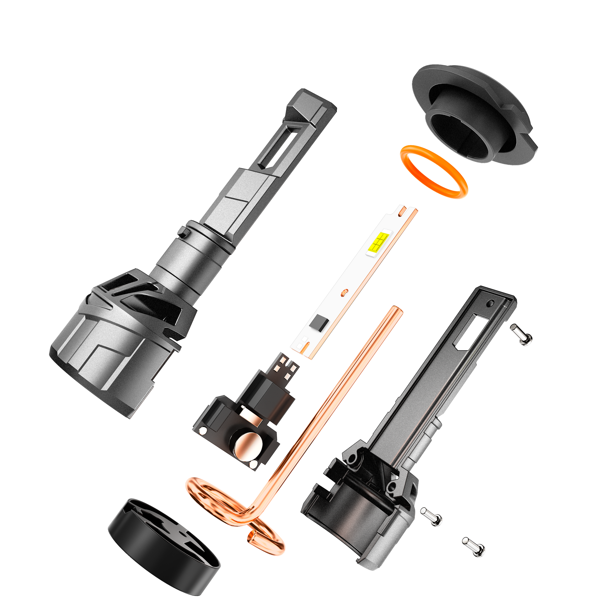 - مصنوع من جسم مصباح من الألومنيوم للطيران 6063، مدمج مع أنبوب نحاسي واحد وتصميم أنبوب نحاسي دائري، ومجهز بمروحة تبريد توربينية 15000 دورة في الدقيقة، مما يساعد على تبديد الحرارة الناتجة عن الرقائق بسرعة وفعالية، مما يطيل عمر المصباح حتى 50000 ساعة.
