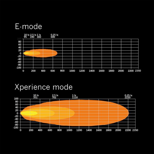 Un éclairage auxiliaire élégant et ultra-efficace avec deux modes de puissance, un faisceau lumineux optimisé pour la circulation routière et des feux de stationnement jaunes et blancs. Convient aux grandes installations ! Flux lumineux indiqué 25 500 lm, portée 1110 m à 1 lux.