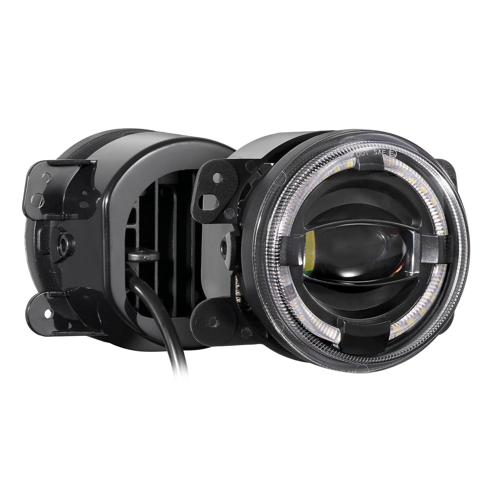 - أحدث تصميم عين السمكة لمصباح الضباب LED المحيط بحلقة الضوء الأبيض يجعل سيارتك أكثر جاذبية للانتباه.