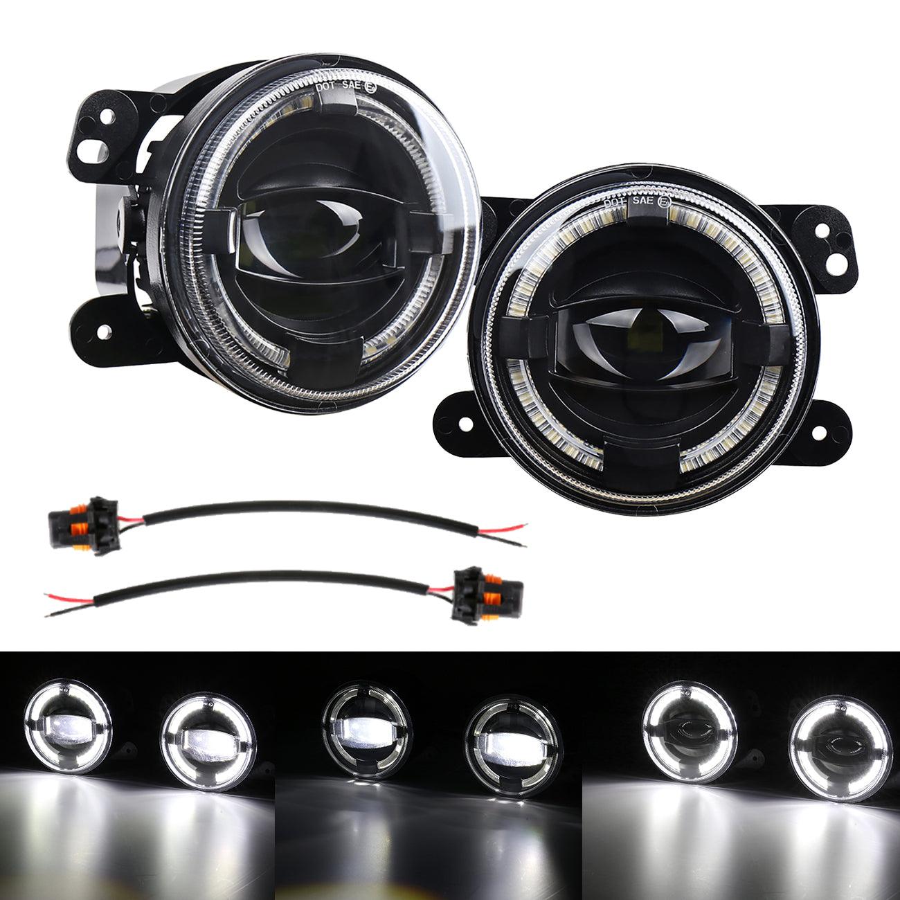 (قطعتان/مجموعة) مصابيح ضباب LED مقاس 4 بوصات 60 وات مع حلقة هالة بيضاء DRL لسيارة Jeep Wrangler JK/ Jeep Grand Cherokee/ Dodge