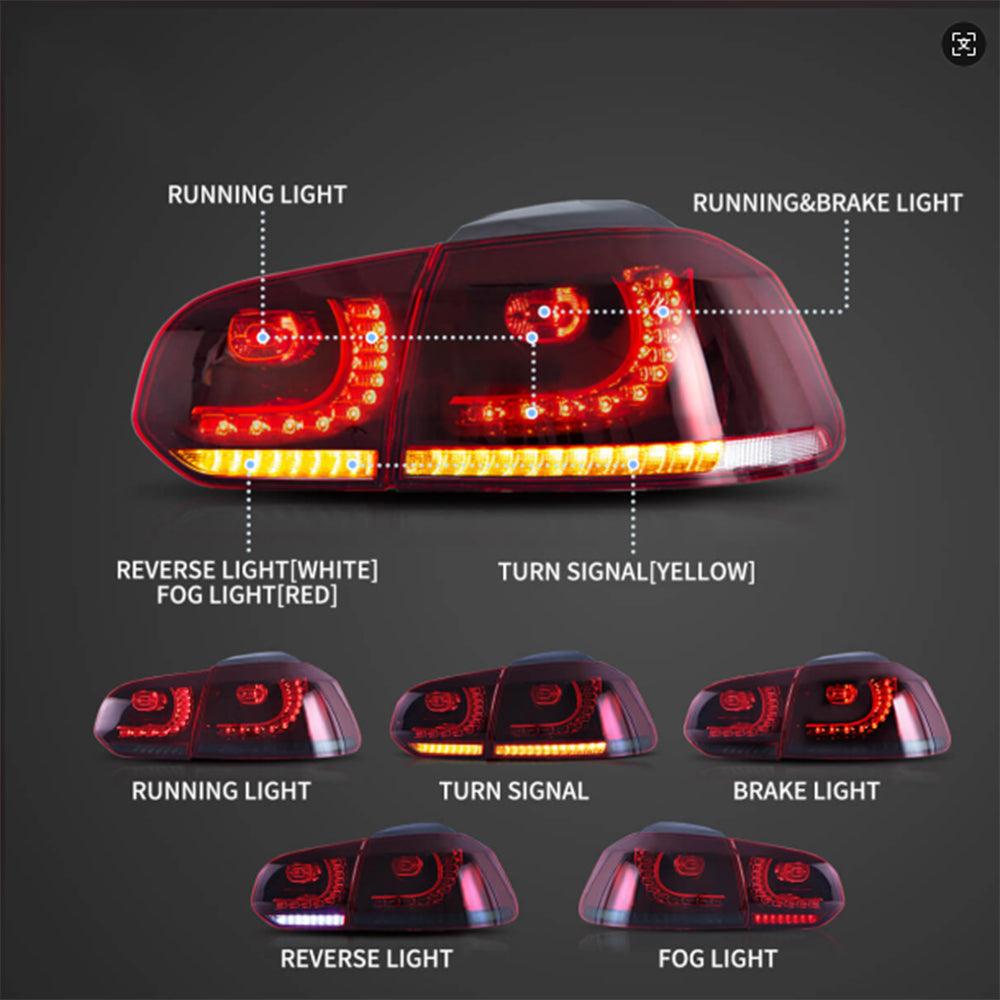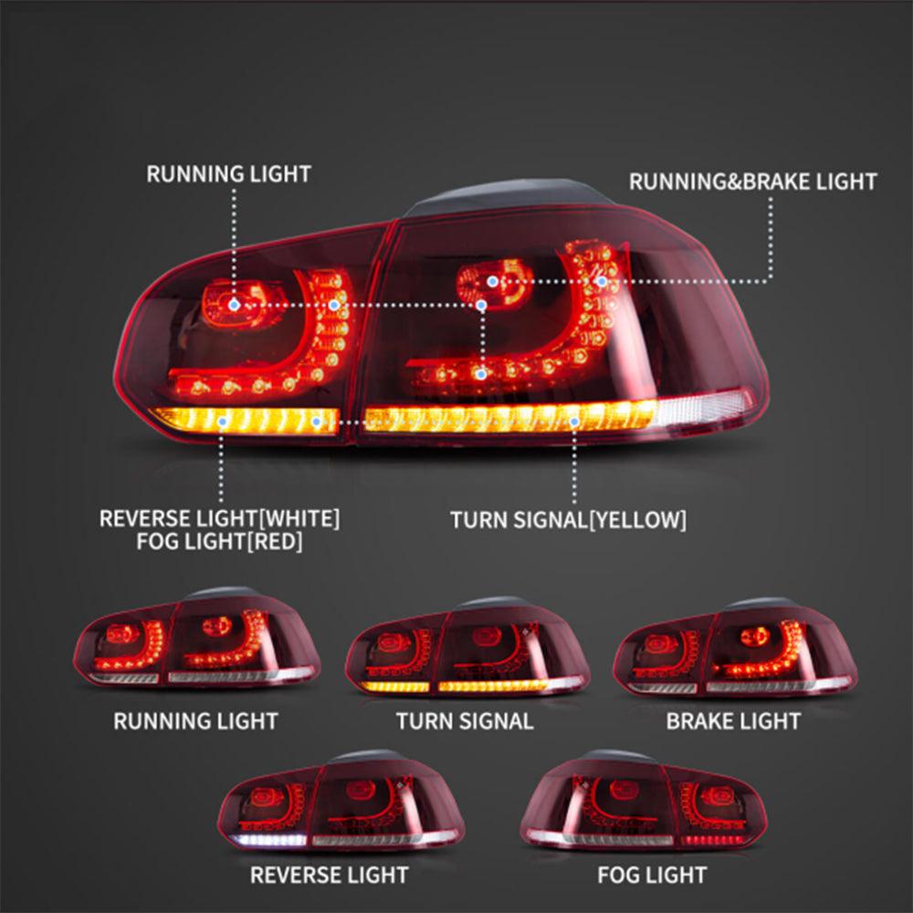 مجموعة مصابيح خلفية LED مع إشارة انعطاف متسلسلة باللون الكهرماني لسيارة فولكس فاجن جولف Mk6 Hetchback موديلات 2008-2014