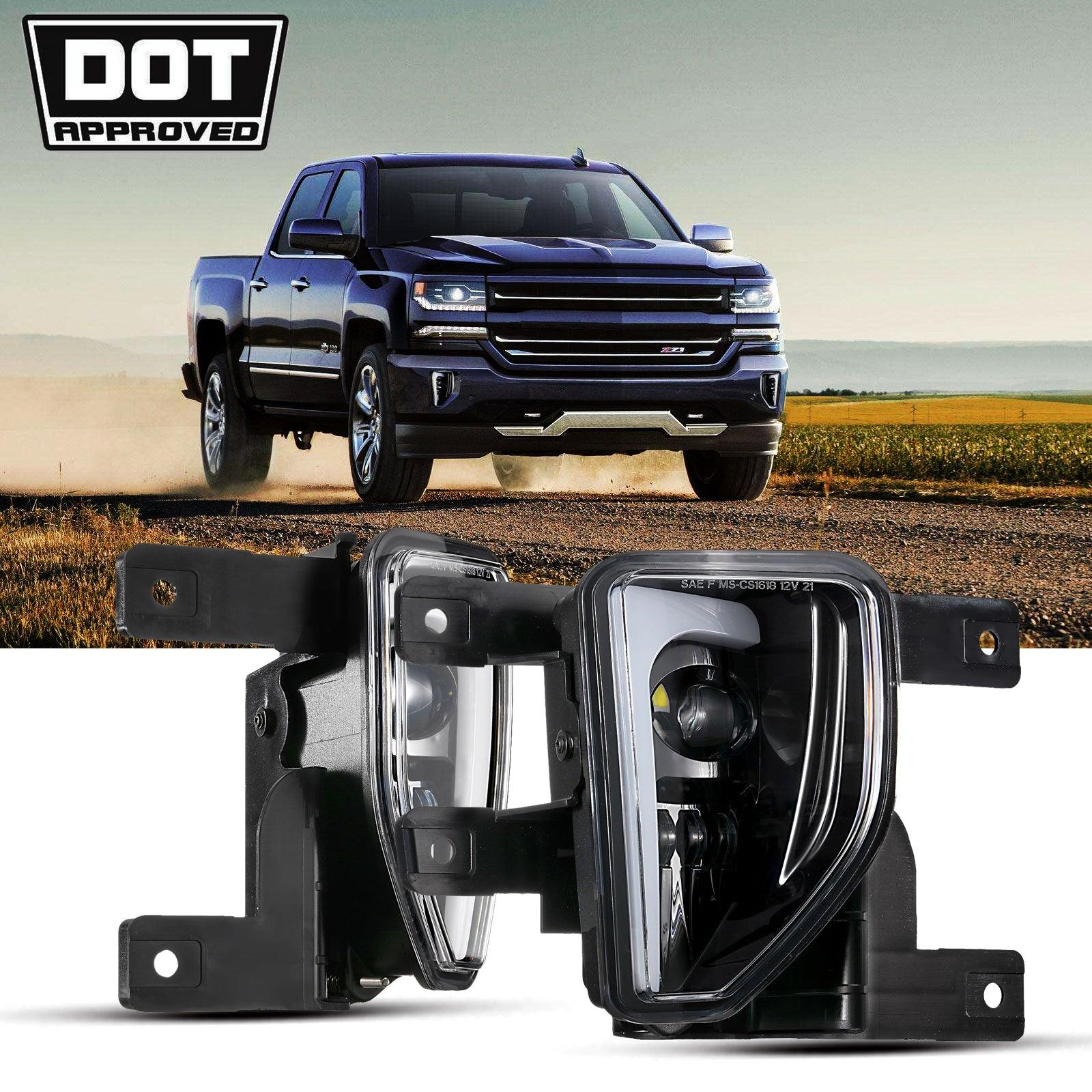 حسّن أداء سيارتك شيفروليه سيلفرادو 1500 مع مصابيح الضباب LED (قطعتان/مجموعة) بقوة 45 واط، المعتمدة من وزارة النقل الأمريكية، مع إضاءة نهارية لتجربة قيادة أكثر أمانًا ومتعة. اطلب الآن لمزيد من الرؤية والأناقة!