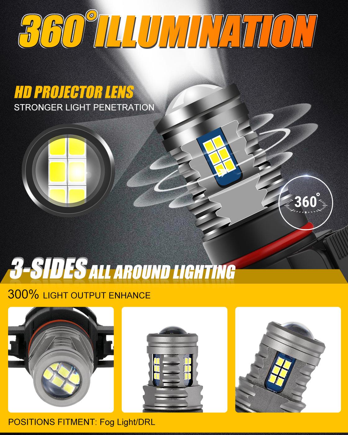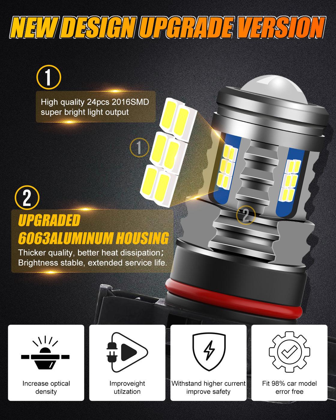 (قطعتان/مجموعة) سلسلة Y2 من مصابيح الضباب LED ثلاثية الجوانب باللون الأبيض البارد/الأصفر الذهبي/النهاري 5202/5201/PS24W/H16EU