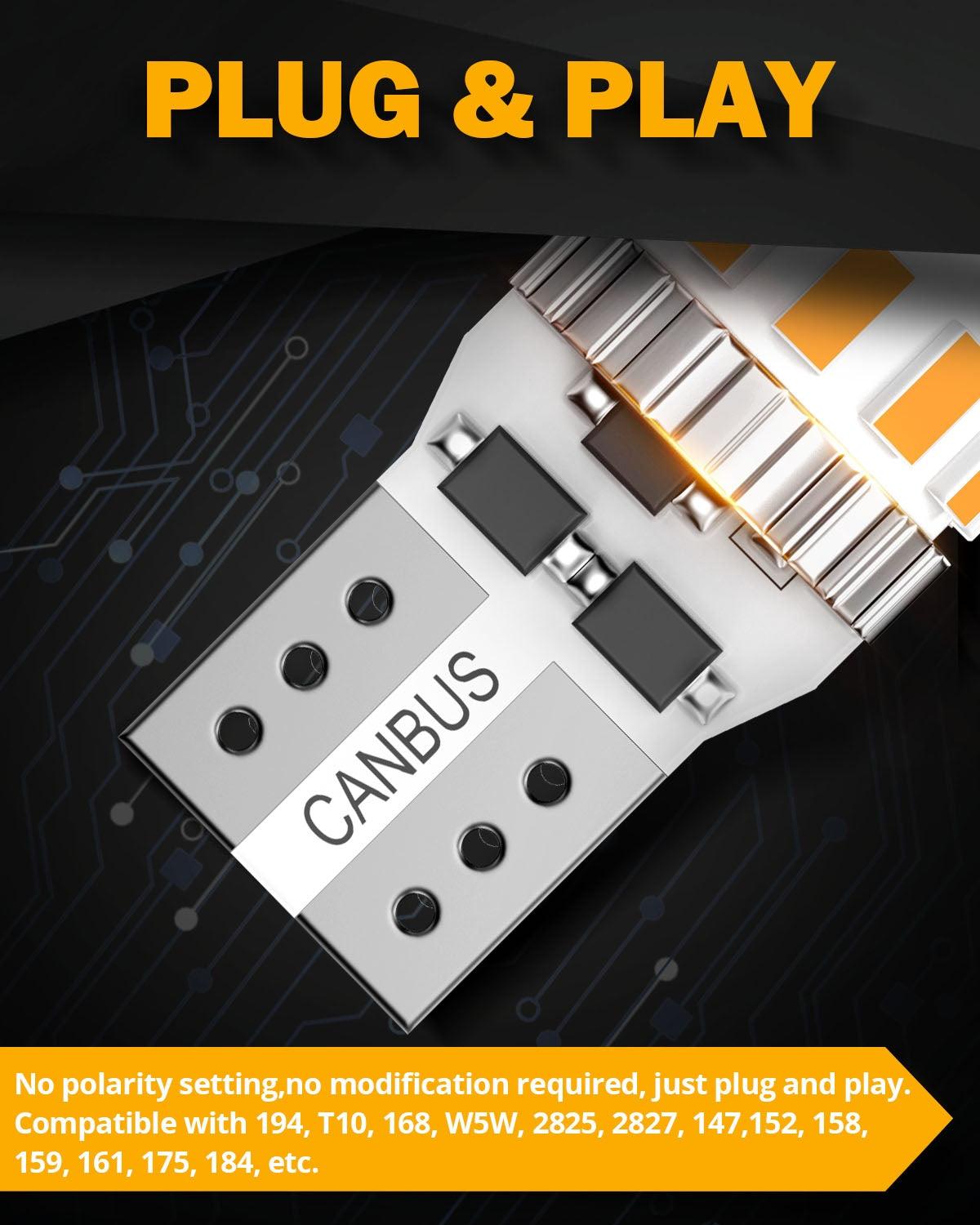168 2825 W5W T10 LED License Plate/Side Marker/Interior Light Bulbs 3W 400% Brighter Canbus Error Free Amber B1 Series | 2 bulbs