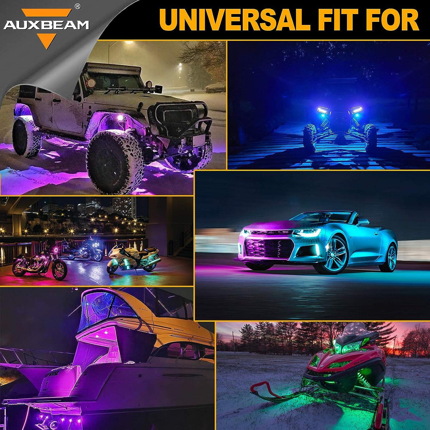 -Widely Used. Auxbeam car underglow lights perfectly to install on your Jeep, ATV, UTV, SUV, Motorcycle, Off Road, Truck, Car, Boat, Dome, etc. Widely used as Puddle Light, Engine Compartment Light, Camper Shell Light, DRL(Daytime Running Light), Backup/Reverse Light, Pickup Bed Light, Dome Light, Foot/Wheel Well Light, etc.
