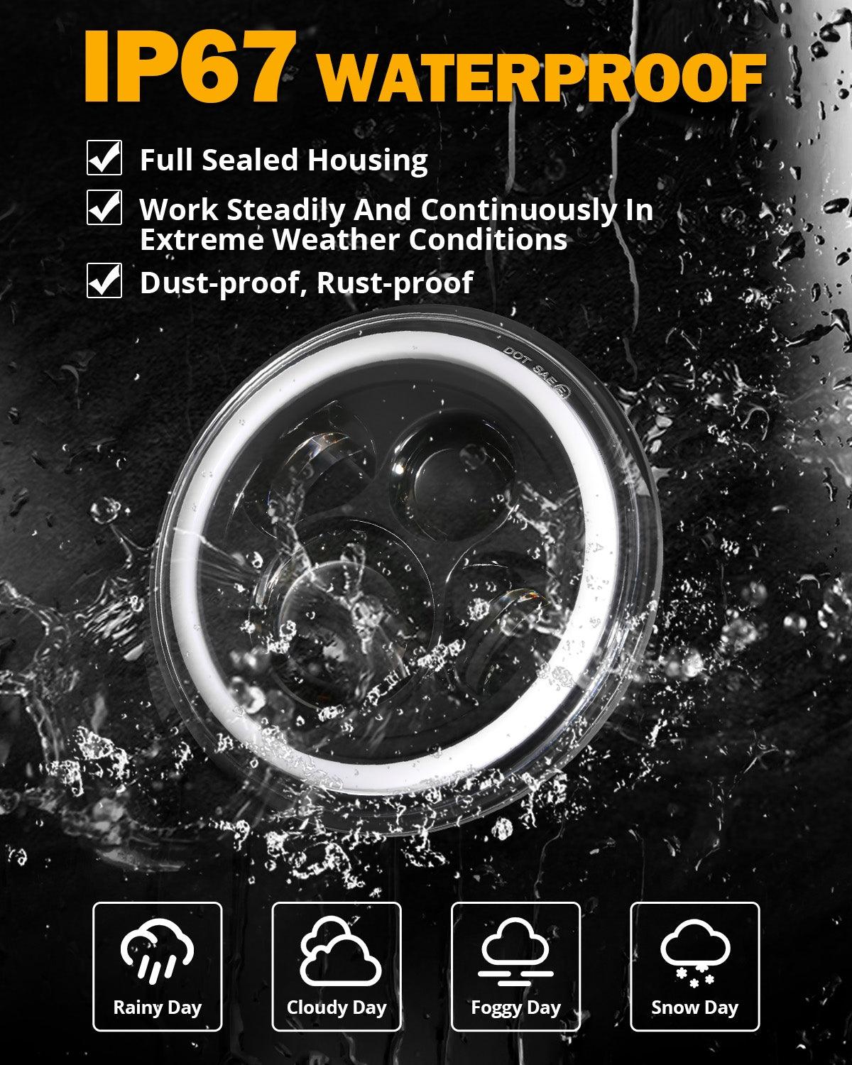 IP67 Water-proof: Integrated cooling system with large rear cooling ribs for optimized heat dissipation. Rustproof and shock-proof, sealed housing.