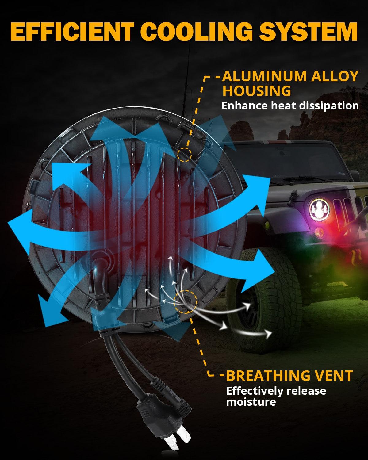 Upgraded 7 Inch Round LED Headlight with RGB Halo Ring for Jeep Wrangler JK TJ LJ