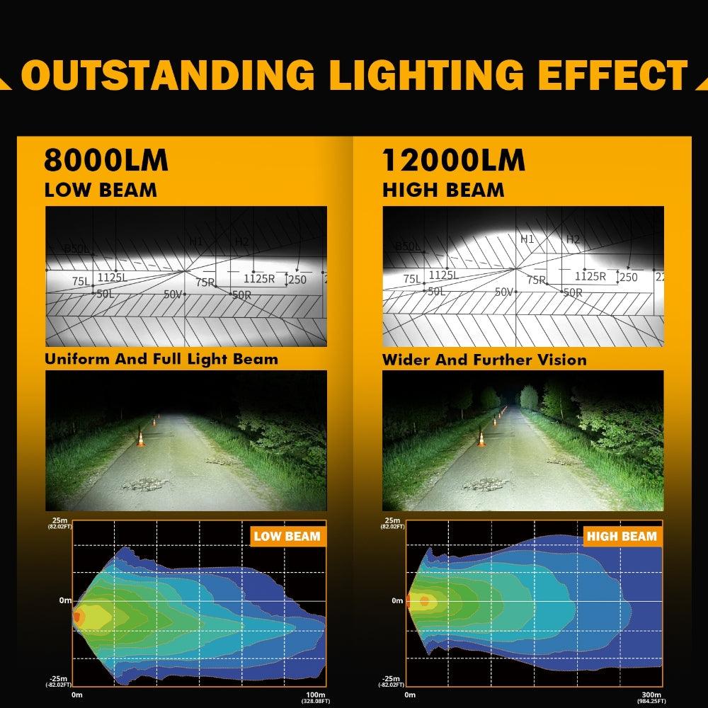 Lumens (even): Low Beam-12000LM/High Beam-8000LM