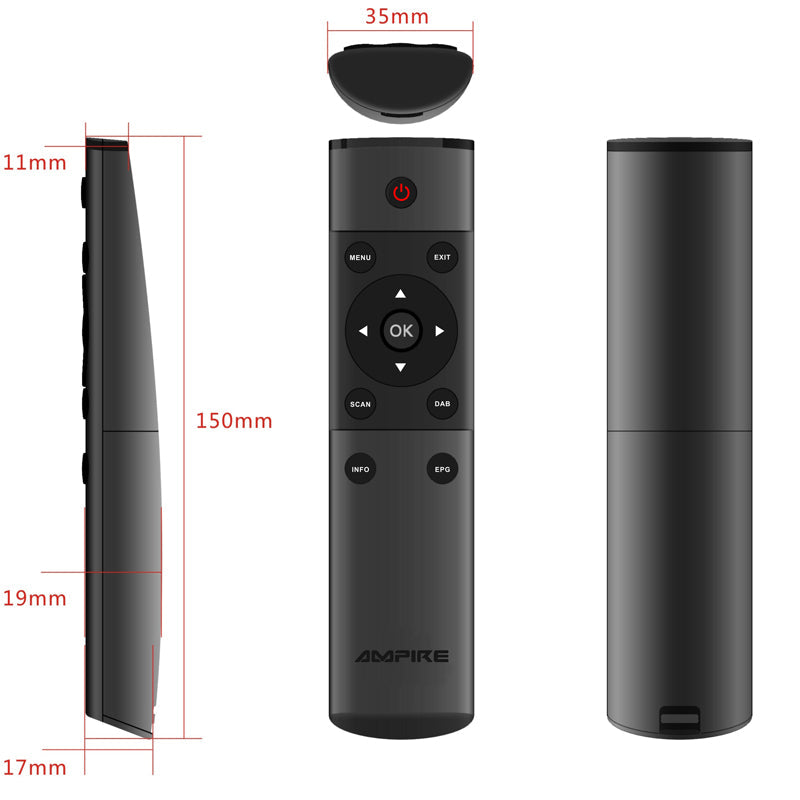The _AMPIRE remote control for the DVBT1000 is not only convenient, but it also ensures seamless control of your viewing experience. Thanks to its infrared technology, every button press is instantaneous, allowing you to easily navigate through your favorite channels.