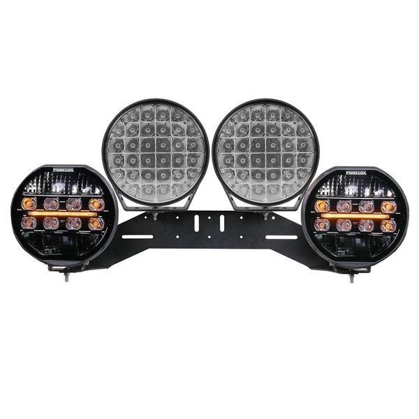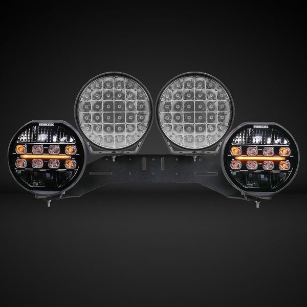 Un ensemble d'éclairage supplémentaire composé de quatre canons lumineux qui se complètent parfaitement, ce qui maximise à la fois la portée et la largeur du faisceau lumineux. Cet ensemble, optimisé pour les conditions difficiles du Nord, offre jusqu'à 49064 lm de puissance lumineuse mesurée et une portée sauvage d'environ 1530 m 1 @ lux. Non homologué pour la circulation routière !