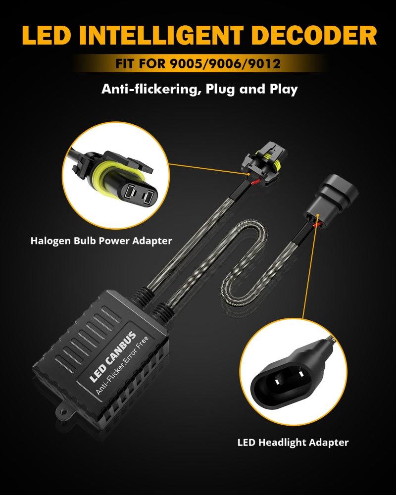 9006/HB4 C20-Model Decoder-Pro Enhanced LED Headlight Bulbs Canbus Decoder Harness Resistor Conversion Kit 2pcs/Set