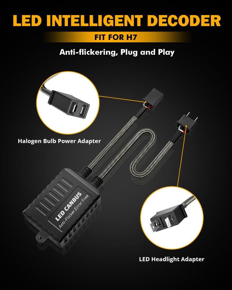 H7 C20-Model Decoder-Pro Enhanced Led Headlight Bulbs Canbus Decoder Harness Resistor Conversion Kit 2pcs/set