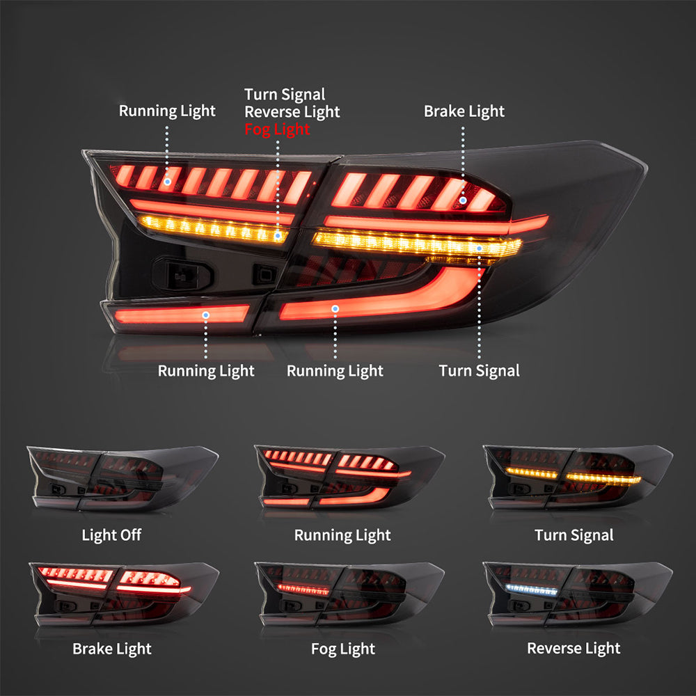 - Fit For Honda Accord 2018 2019 2020 2021 2022 10th Gen Aftermarket V4 Taillights / Rear lights.