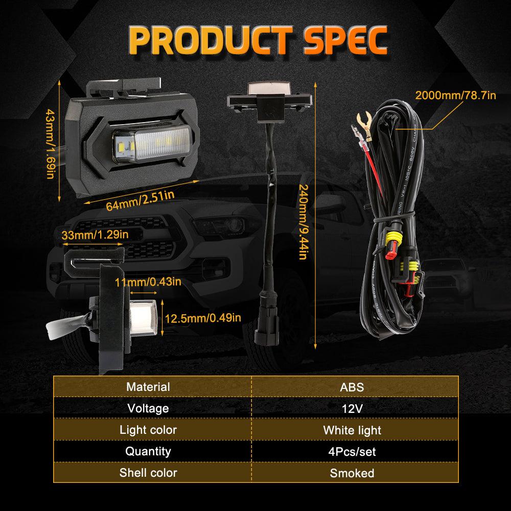 (4pcs/set) LED Front Grille Lights White Light for Toyota Tacoma 2020-2021 TRD Off Road/TRD Sport (Smoked Shell)