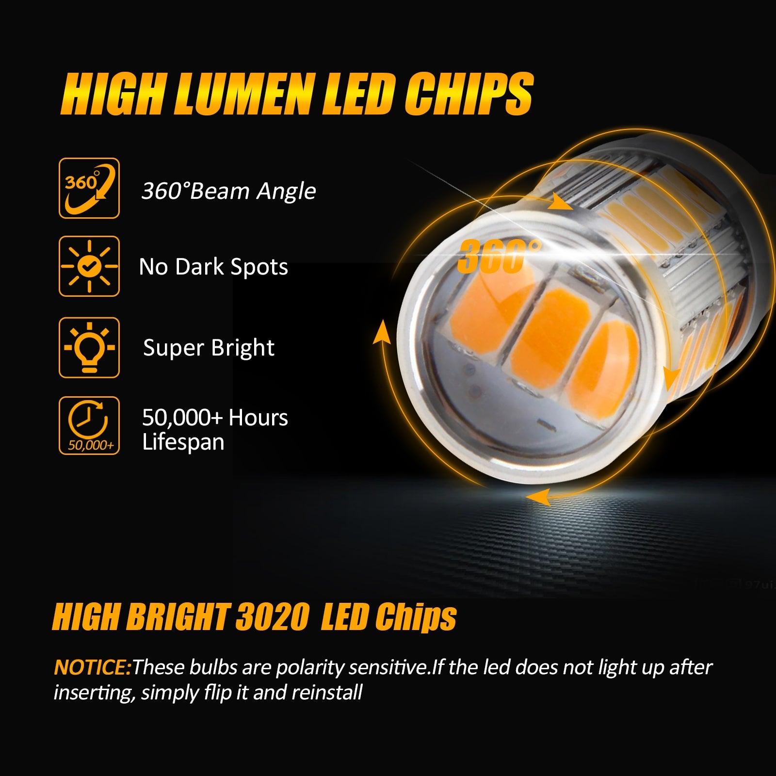 T25 3157 3156 LED Turn Signal Light Rear/Front, Side Maker Light Bulbs 20W 4000LM 3500K Amber 33LED Series | 2 bulbs