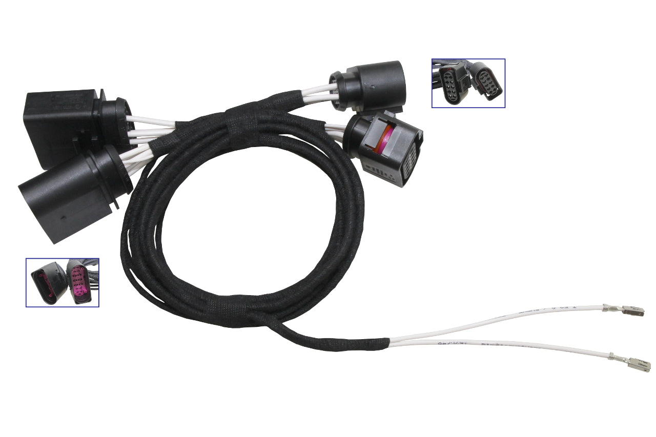 Specific halogen adapter for converting from xenon headlights to halogen headlights. Suitable for the following vehicles: VW Caddy 2C, VW Touran 1T3. High-quality OEM-quality adaptation. Only one set is needed to connect both headlights. Scope of delivery: Plug & Play xenon to halogen adapter. Note: For the commissioning of manual headlight leveling (mLWR), the extension cable set is always required.