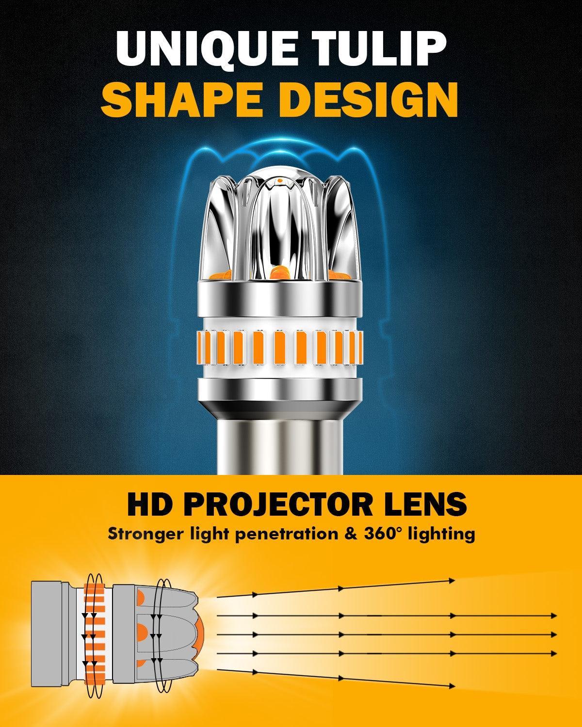 - Built-in upgraded CANBUS system, compatible with 99% of vehicles, no hyper flash and error warnings, no need to add additional resistors or parts.