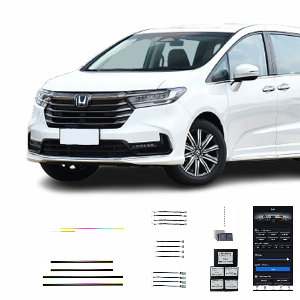 Transformez l'intérieur de votre Honda 15-24 Odyssey ou Elisen avec ce kit d'éclairage d'ambiance spécialement conçu pour les modèles à quatre portes. Ce système d'éclairage innovant compte 18 LED intégrées qui diffusent une lumière douce et chaleureuse, créant une atmosphère élégante et relaxante à chaque trajet.