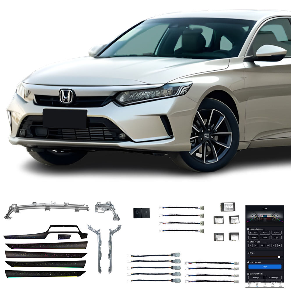 Transformez l'intérieur de votre Honda Inspire (modèles 2019 à 2022) avec ce kit d'éclairage d'ambiance haut de gamme. Conçu spécialement pour s'adapter parfaitement à la structure en bois de votre tableau de bord, ce système d’éclairage Star Magic crée une atmosphère élégante et personnalisée qui sublime chaque trajet.