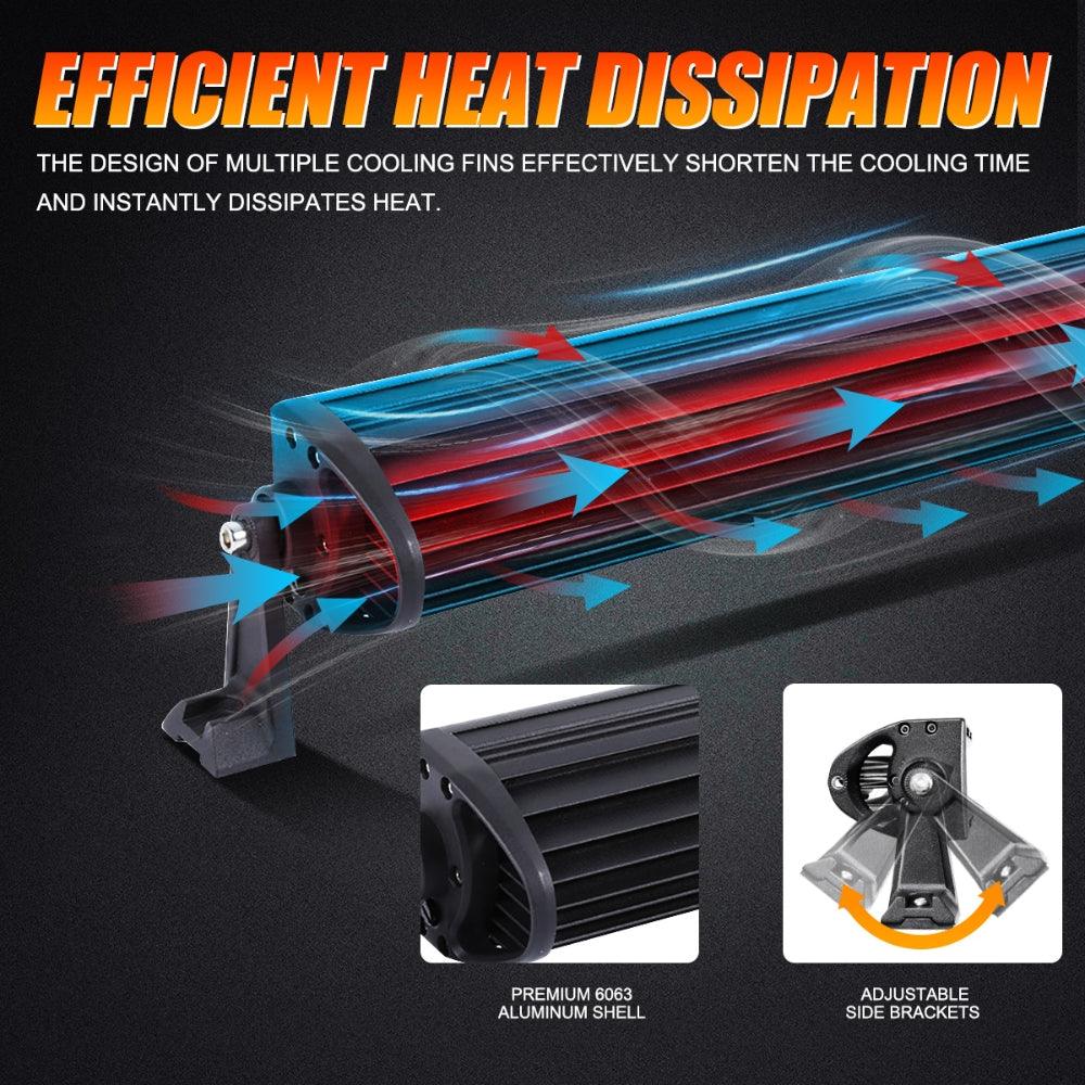 - Long-lasting Lifespan: Our work lamp is designed with evolutional 5D optic tech (Dual reflector cup + projector lens), thickened full aluminum profile, and IP68 waterproof rubber pad. This ensures that the light bar is highly waterproof, corrosion-resistant, and has a fast cooling radiator that extends the service life of more than 50,000 hours.