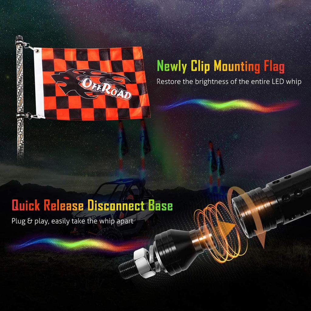 - EXCELLENT DURABILITY FOR OFF-ROAD USE. Our LED lighted whip are made from reinforced polycarbonate material, can be bent up to 180° on longer units, allowing it to withstand any rugged terrain, enhancing its durability.