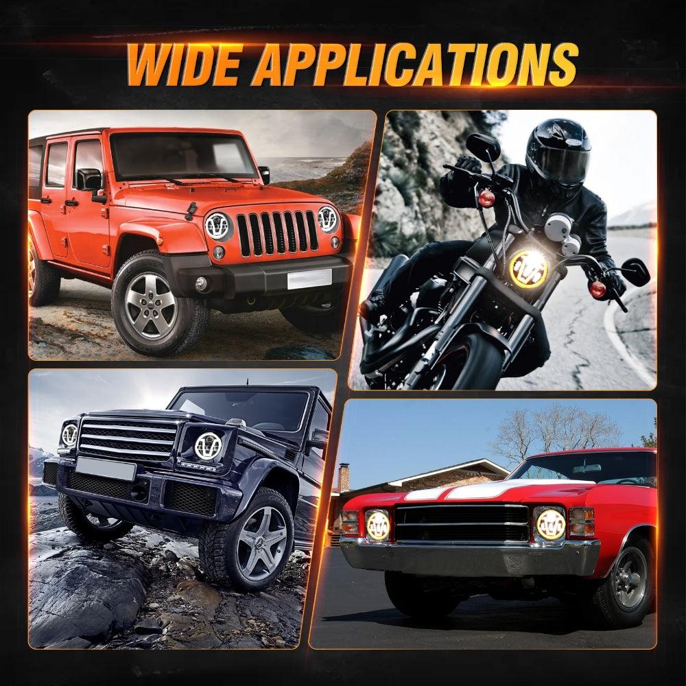 Wide Applications: Fits most vehicles with 7 inch round headlight. Compatible with 2007-2017 Jeep Wrangler Unlimited JK 4 door & JK 2 door, 1997-2006 Jeep Wrangler TJ, 1981-1985 Jeep CJ-8 Scrambler, 1976-1986 Jeep Wrangler CJ-7, Land Rover Defender 90 and Rover County Classic Sport Utility 4-Door 1995.