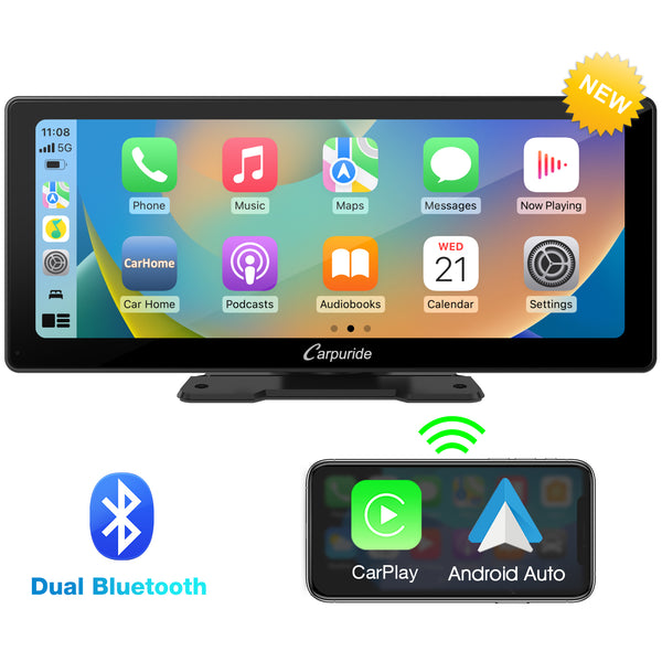 Carpuride W103 Pro est un autoradio portable Carpuride pour voiture ou moto, idéal si vous souhaitez ajouter Apple CarPlay ou Android Auto sans changer l’installation d’origine.