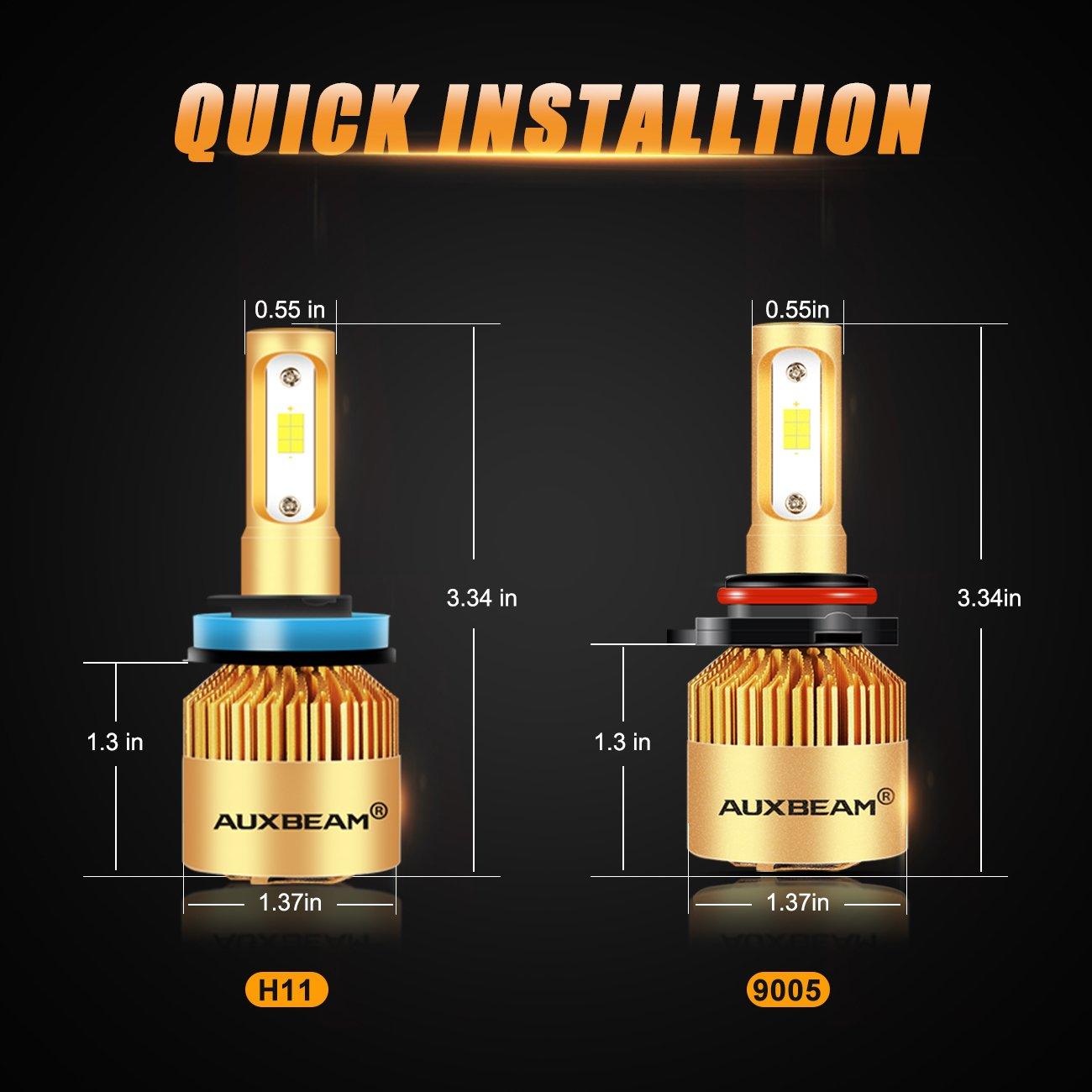 - S3 series 9005 LED light bulbs with 360° precise beam no blind zone, use automotive upgrade CSP chips, light output with 72W power and 10,000LM per set, providing better visibility up to 4 times brighter than halogen lights.