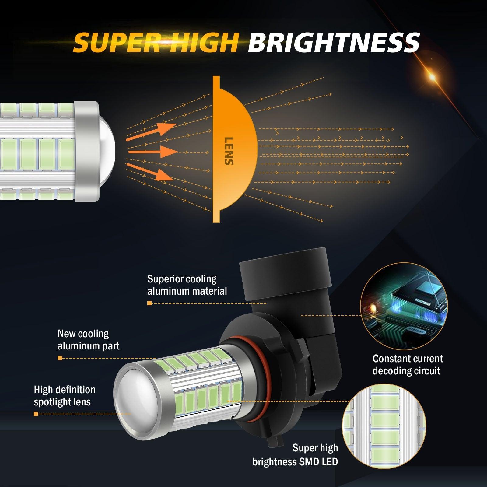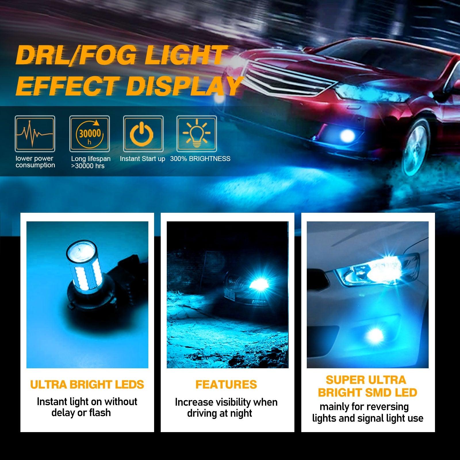 H10 9145 9140 HB3 LED Fog Light/DRL 50W 4000LM Ice Blue 33LED Series | 2 Bulbs