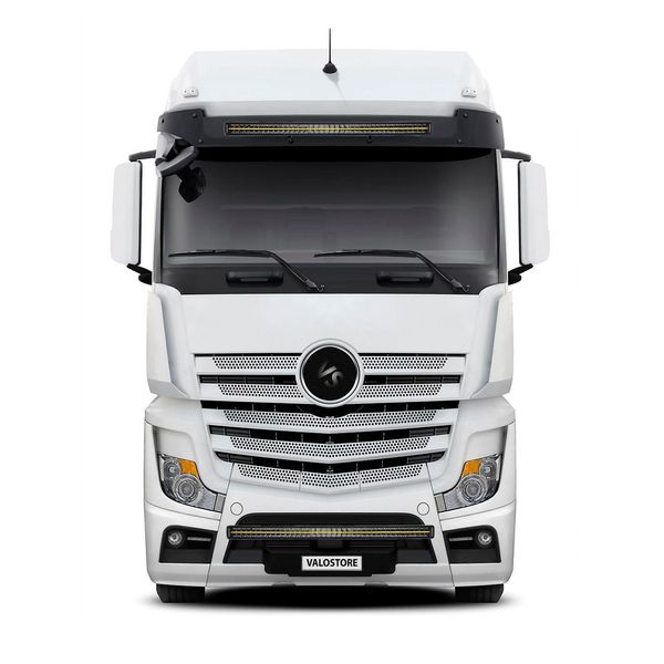 Un élégant panneau lumineux auxiliaire à deux rangées, équipé par exemple d'un feu de stationnement dynamique bicolore et de deux modes de puissance différents. Excellentes performances à un prix avantageux ! Rendement lumineux mesuré 24336 lm, portée mesurée 580 m à 1 lux.