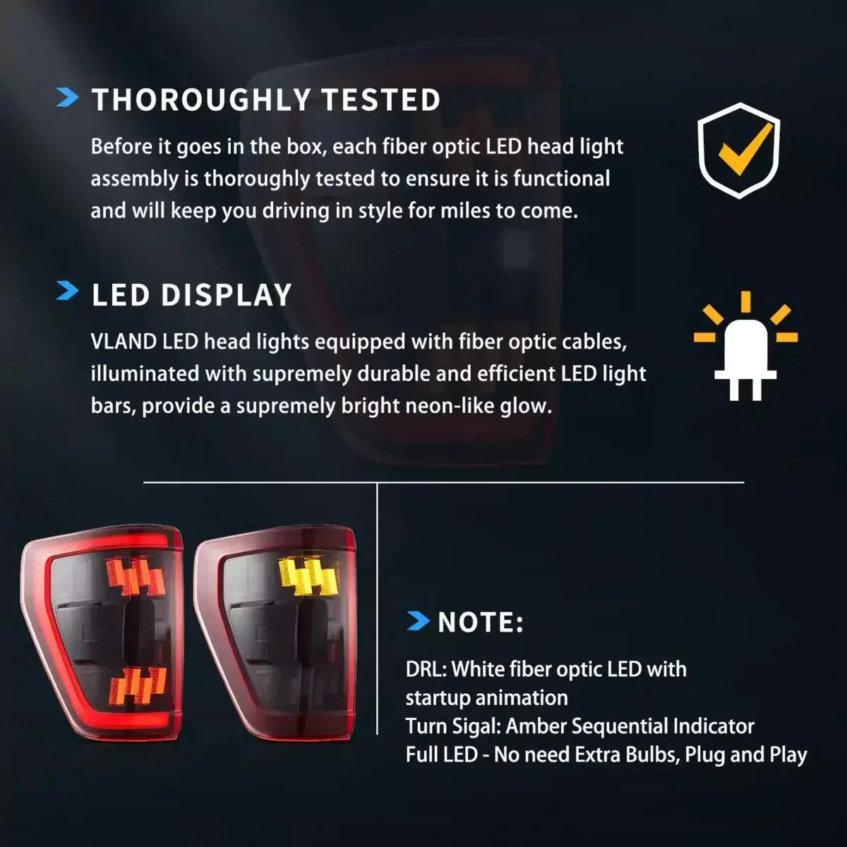 - One pair of Tail Lights (including left side and right side) This item has the same connections and wires with the original Tail Lights.