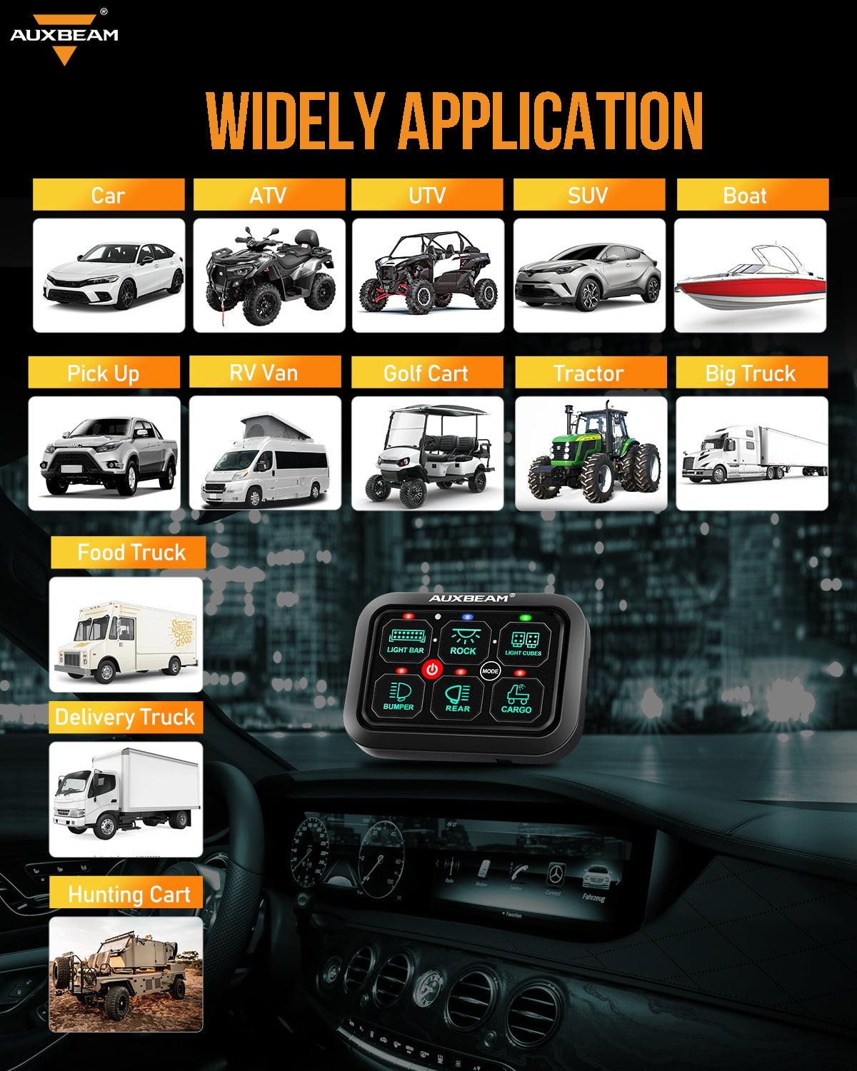 Universal fitment. Widely use for Truck, Boat, Car, Bus, Off-road, Powersports, Marine, ATV, UTV, SUV, Side by Side, SxS, Heavy-duty machines, etc.