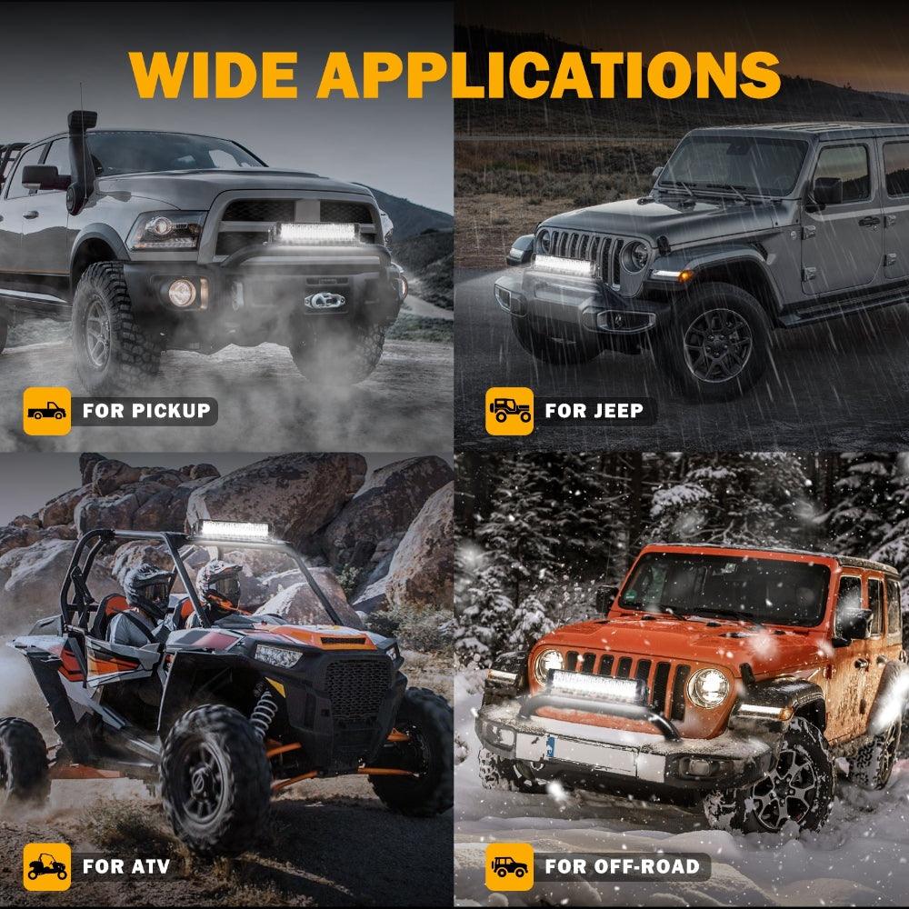 Wide Applications: Equipped with adjustable mounting bracket, could be installed to any mounting holes of your cars. 10V-30V power supply compatible with different types of off-road vehicles like Jeep SUV ATV UTV and truck, great for illuminating workspaces, fast-moving trails and winding country roads.
