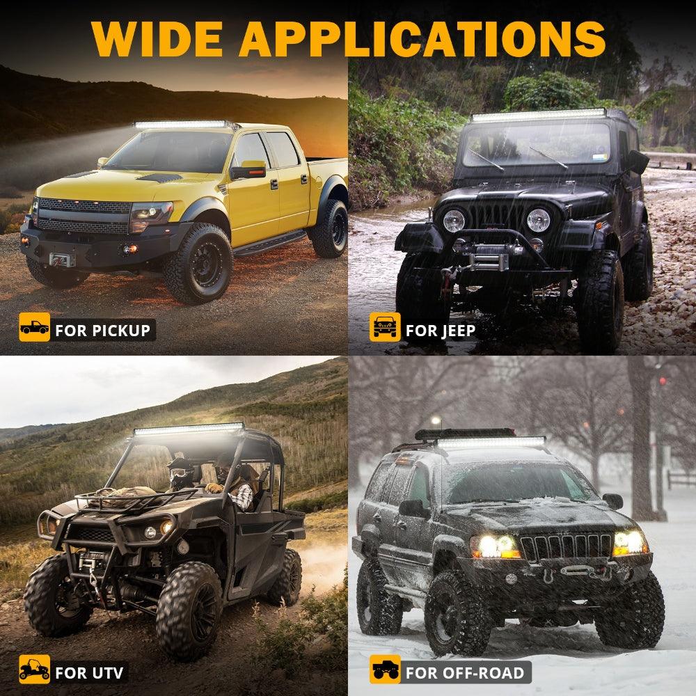 Wide Applications: Equipped with adjustable mounting bracket, could be installed to any mounting holes of your cars. 10V-30V power supply compatible with different types of off-road vehicles like Jeep SUV ATV UTV and truck, great for illuminating workspaces, fast-moving trails and winding country roads.