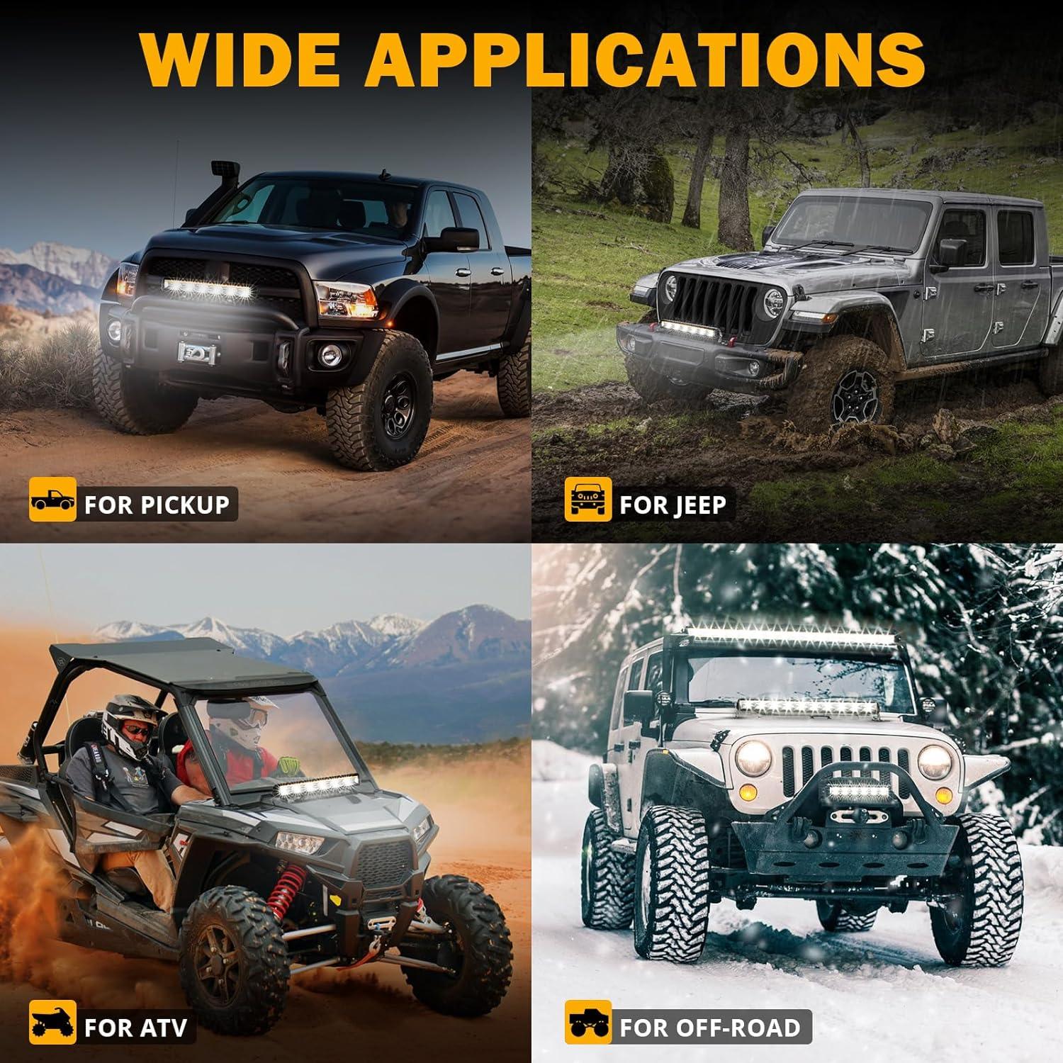 Wide Applications: Equipped with adjustable mounting bracket, could be installed to any mounting holes of your cars. 10V-30V power supply compatible with different types of off-road vehicles like Jeep SUV ATV UTV and truck, great for illuminating workspaces, fast-moving trails and winding country roads.
