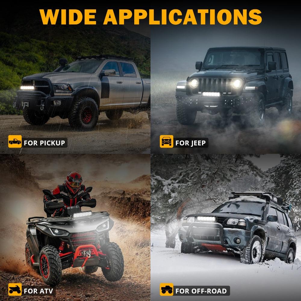 Ultra Brightness: Adopt advanced P8 led chips, total 70 watts, with lighting performance 8160LM, 1Lux@468Meters. Features a trusted ultra-bright, high-intensity, stable light output, providing excellent visibility in the dark night, ensuring a safer and more enjoyable off-road experience.
