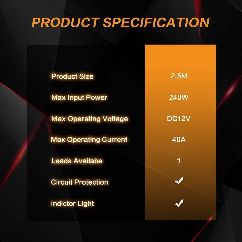 Total 2.5M in length, meet your needs for mounting your lights anywhere on the vehicles.