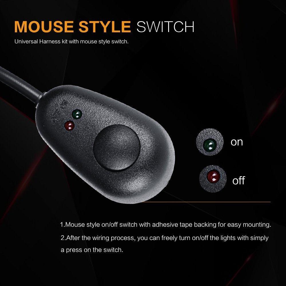 Auxbeam universal harness kit with mouse style switch, can hook with one heavy duty off road led light bar within 240W.