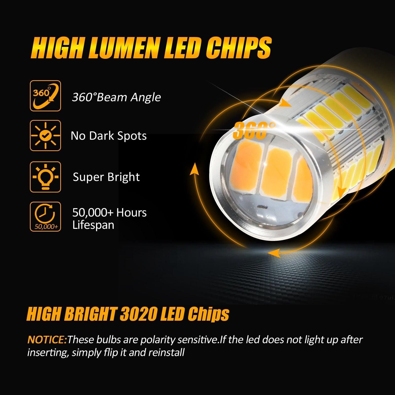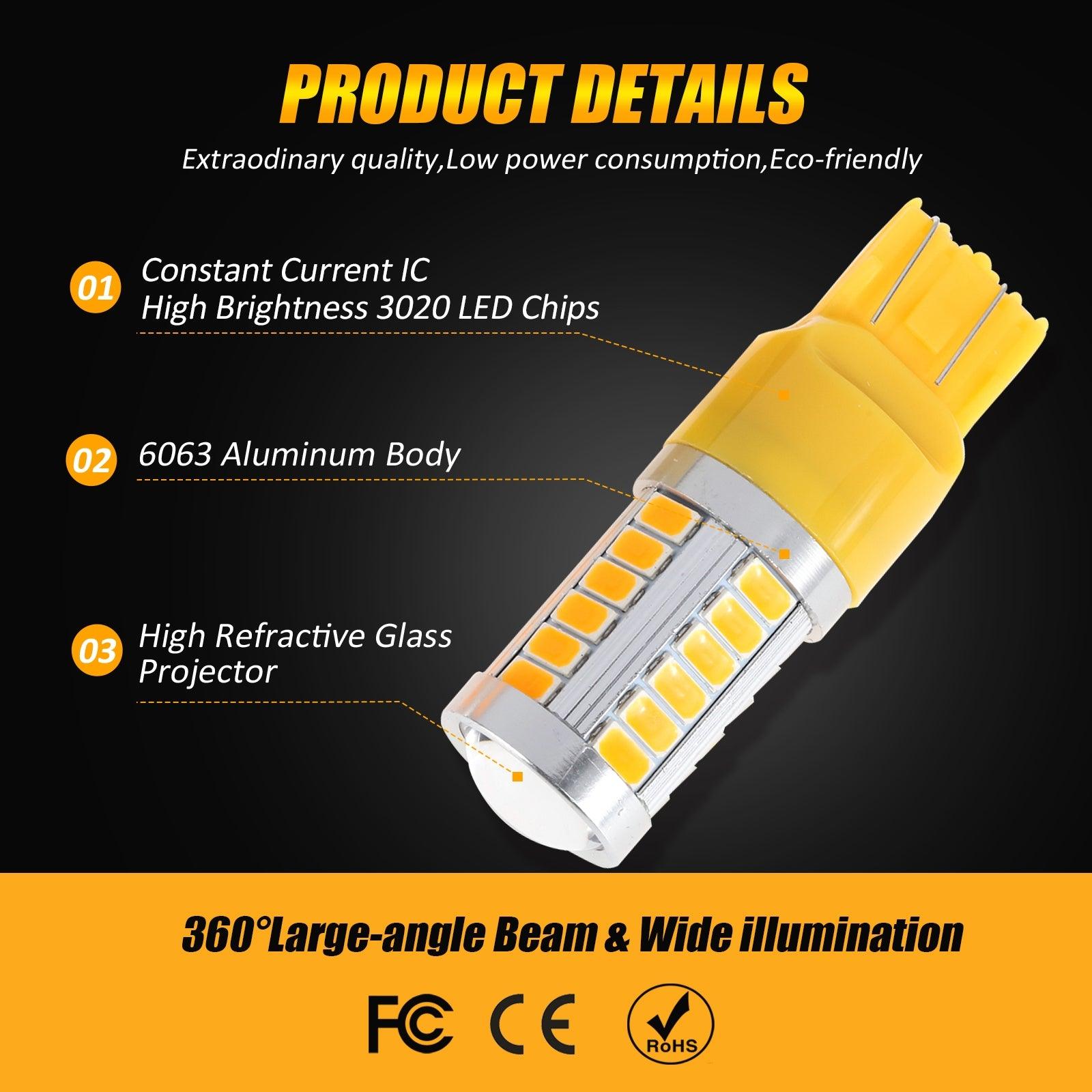 T20 7443 7440 LED Turn Signal Light Rear/Front, Side Maker Light 20W 4000LM 3500K Amber 33LED Series | 2 Bulbs