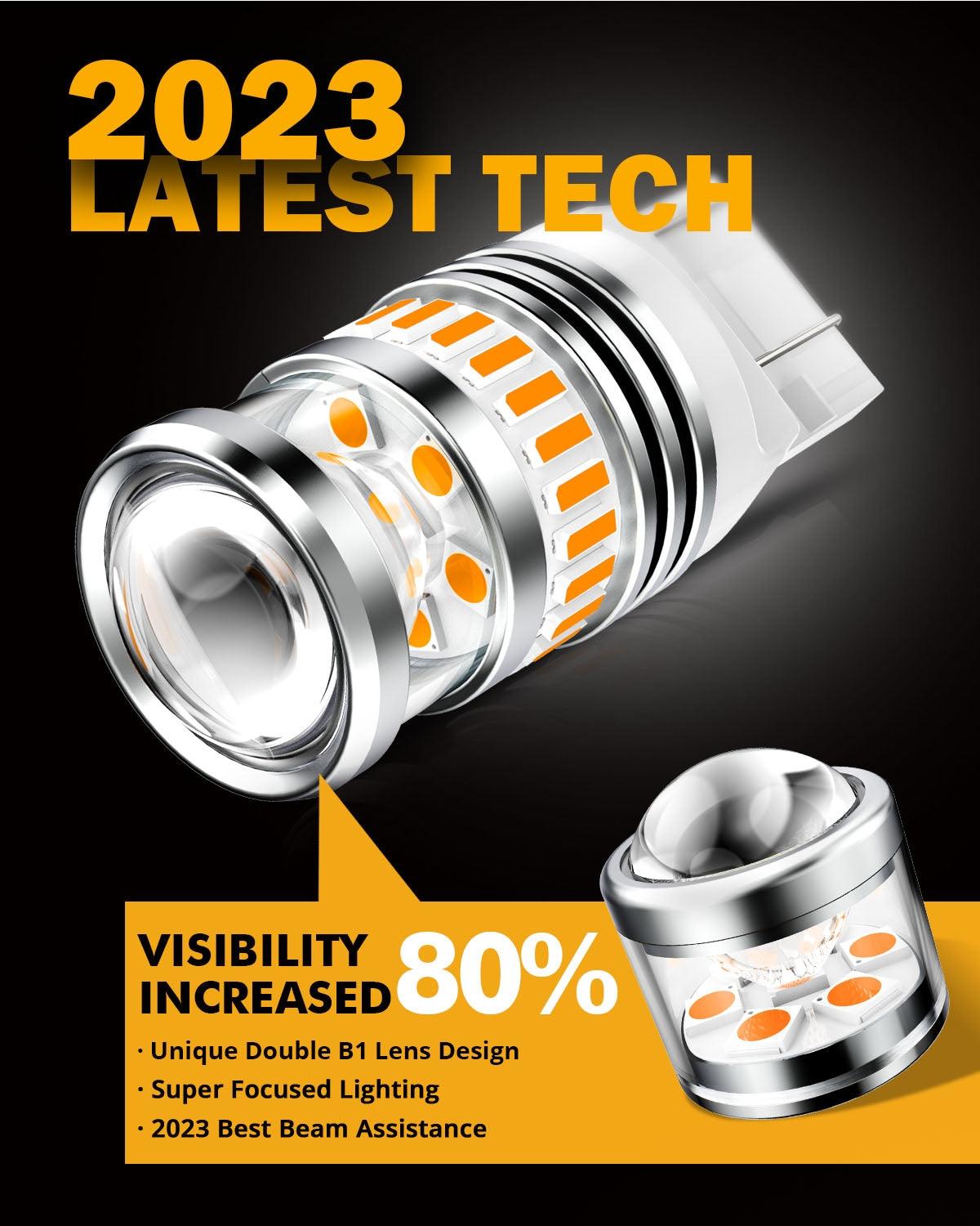 T20 7443 7440 LED Turn Signal Light Rear/Front, Side Maker Light Bulbs 11W 4000LM 3500K Amber B1 Series | 2 Bulbs